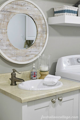 Nod To Nautical Bathroom Makeover Reveal Bathroom Makeover Nautical Bathrooms Mirrored Bathroom Accessories